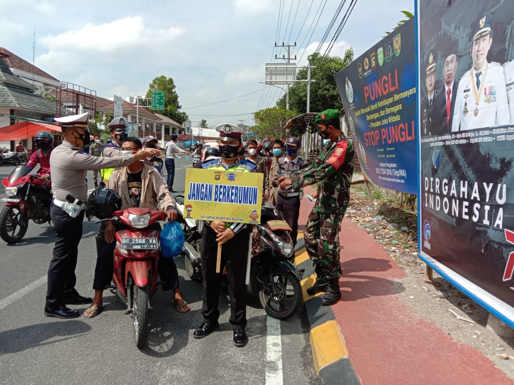 Kodim OKU – Babinsa Koramil 08/Muardua Sertu Didik Wahyudi melaksanakan penegakan Disiplin Protokol Kesehatan di jalan Lintas Muaradua Kabupaten OKU Selatan, terhadap pengendara motor dan mobil yang masih belum menggunakan masker. Selasa (21/09/2021)