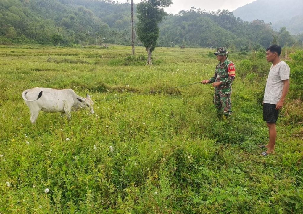 Terlihat ia melakukan komunikasi sosial (komsos) dengan salah satu warga peternak sapi yang ada di lokasi TMMD tepatnya di Desa Karang Agung Dusun VII Talang Meliku, Kecamatan Simpang, Kabupaten OKU Selatan Senin (02/06/2025)