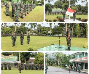 OKU – Kodim 0403/OKU melaksanakan upacara pengibaran bendera Merah Putih yang digelar di lapangan Makodim, Jl. A. Yani KM 6 Kemelak Bindung