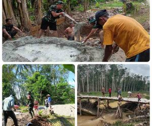 OKU – Bersama warga, Kodim 0403/OKU melaksanakan pembangunan 3 (tiga) jembatan Garuda di wilayah Kabupaten OKU Timur sebagai konektivitas dan mendorong perekonomian