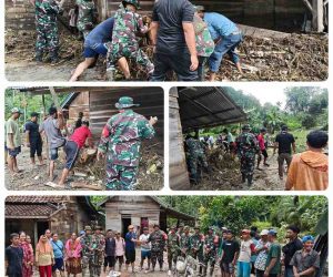 Oku Selatan – Danramil 403-10/BDA, Kapten Inf Fuad Ridwan, memerintahkan jajaran Babinsanya ikut membantu membersihkan rumah dan barang milik warga yang mengalami