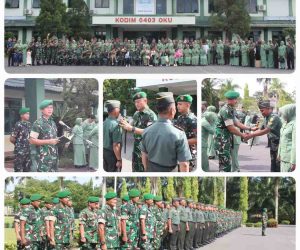 OKU – Kodim 0403/OKU menyelenggarakan upacara kenaikan pangkat periode 1 April 2026, yang diikuti para Prajurit, ASN dan Persit yang bertempat di