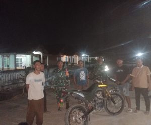 Babinsa Koramil 403-04/Belitang Kodim 0403/OKU, Serda Doni Riyanto melaksanakan patroli bersama, menghimbau agar masyarakat bisa bekerja sama dalam menjaga keamanan lingkungan Desa