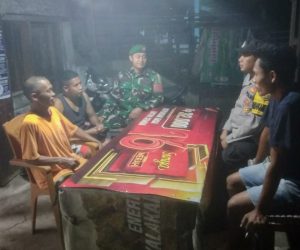 OKU – Ciptakan rasa aman di lingkungan masyarakat, Babinsa Koramil 403-02/Peninjauan Kodim 0403/OKU Sertu Devi Lisdiyanto bersama Perangkat Desa, Tokoh Pemuda dan