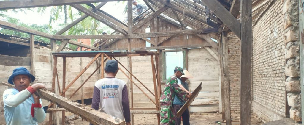 Babinsa 06 Cempaka Kodim OKU Bantu Renovasi Rumah Warga Binaannya