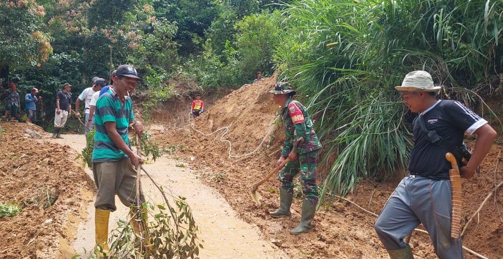 “Dengan alat seadanya, Kami Babinsa bersama warga bahu membahu membersihkan material longsor yang menutupi jalan,” ujar Serda M. Mujahidin saat ditemui di lokasi kegiatan.