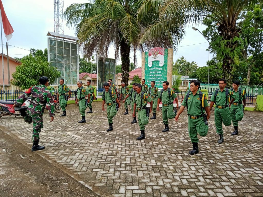 Kodim OKU – Bertempat di halaman Balai Desa Karya Mukti Babinsa Koramil 02/Peninjauan Praka Robi Jailani memberikan materi Baris – berbaris kepada Bapak bapak Hansip yang berada di Desa Karya Mukti, Kecamatan Sinar Peninjauan, Kabupaten OKU. Selasa (07/06/2022)