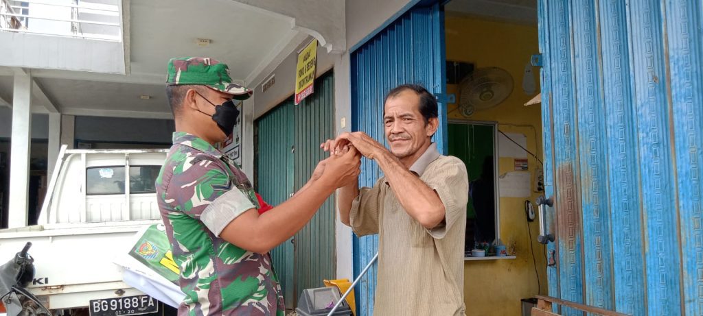 Babinsa Koramil 02/Peninjauan Terus Melaksanakan Disiplin Prokes Dan Bagikan Masker Kepada Masyarakat