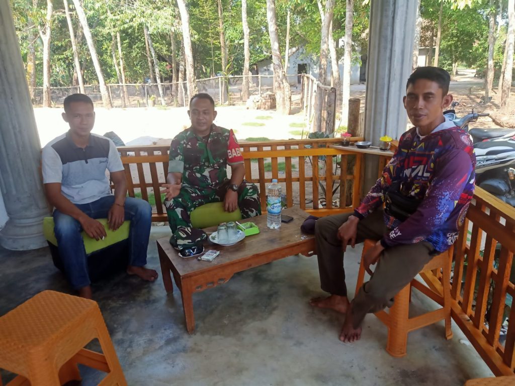 Ciptakan kedekatan warga binaan, Babinsa Koramil 03/Martapura jajaran Kodim 0403/OKU Serda Wahid melaksanakan Komsos dengan masyarakat Sukabaru, Kecamatan Bunga Mayang, Kabupaten OKU Timur, Rabu (05/02/2025)