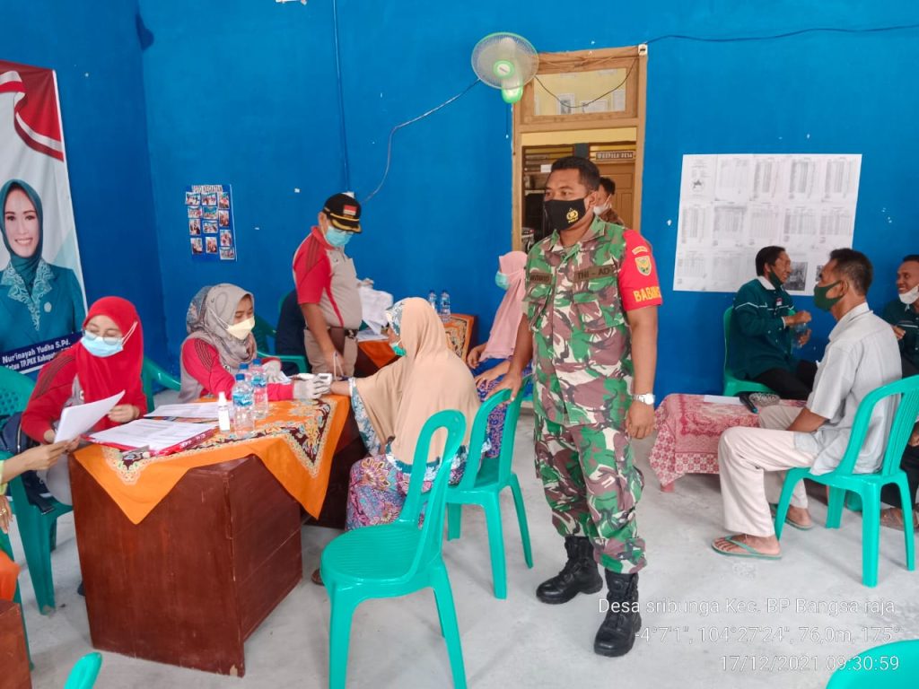 Demi menjaga keamanan dan kelancaran pelaksanaan vaksinasi Covid-19 kepada masyarakat di desa binaannya, personel Babinsa bersama aparat lain seperti Polsek, Aparat Desa aktif mendampingi tim medis, serta memberikan pemahaman kepada masyarakat bahwa vaksinasi pasti aman dan halal untuk digunakan.