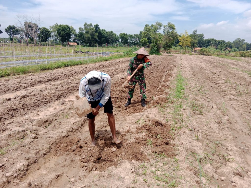 OKU – Babinsa Koramil 06/Cempaka Kodim 0403/OKU Serda M. Sartono bantu warga melaksanakan pengolahan lahan untuk tanaman cabe rawit di Desa Minanga Tengah, Kecamatan Semendawai Barat, Kabupaten OKU Timur, Selasa (29/10/2024)
