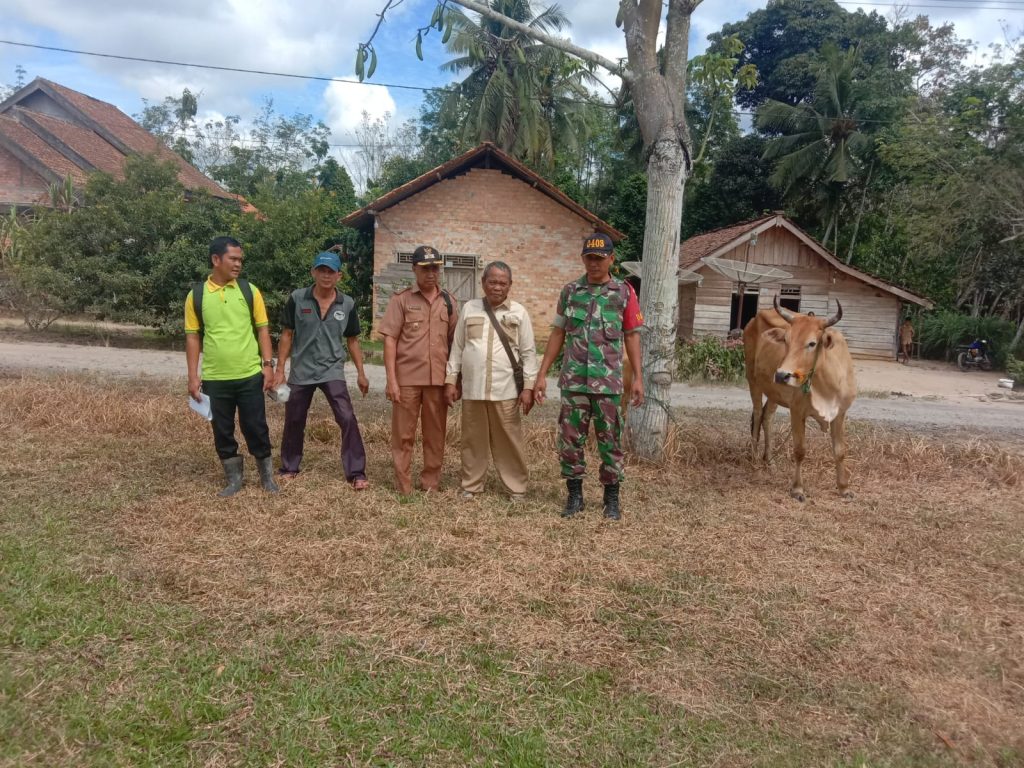 Kodim OKU – Babinsa Koramil 06/Cempaka, Kodim 0403/OKU, Kopda Sulam melaksanakan pendampingan vaksinasi sapi milik warga binaannya, Senin (15/08/2022).