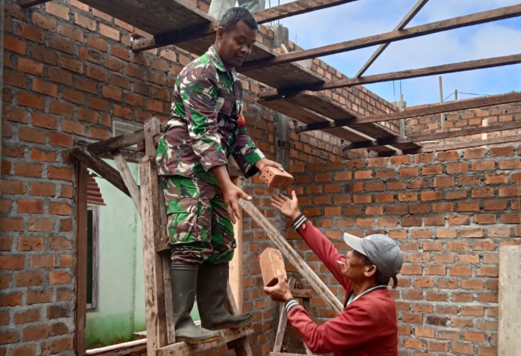 Babinsa Koramil 11/Pulau Beringin Bantu Pasang Batu Bata Rumah Warga Binaan
