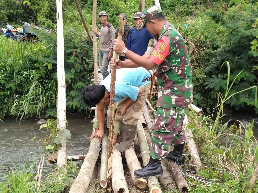 Kodim OKU – Jembatan merupakan satu-satunya akses jalan masyarakat Desa Anugerah Kemu menuju ke kebun dan lahan padi ladang milik mereka. Dikarenakan akses penghubung tersebut sudah rusak dan hanyut terbawa arus air, maka perlu adanya perbaikan guna melancarkan aktivitas masyarakat sekitar.