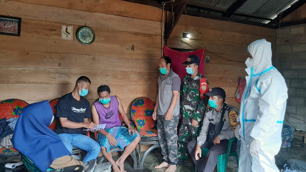 Kodim OKU – Babinsa Koramil 11/Pulau Beringin Serda Yuhaidil melaksanakan kegiatan patroli PPKM Berbasis Mikro dan penegakan disiplin protokol kesehatan kepada warga masyarakat desa Pecah Pinggan, Kecamatan Sungai Are Kabupaten OKU Selatan, Rabu (24/11/2021).
