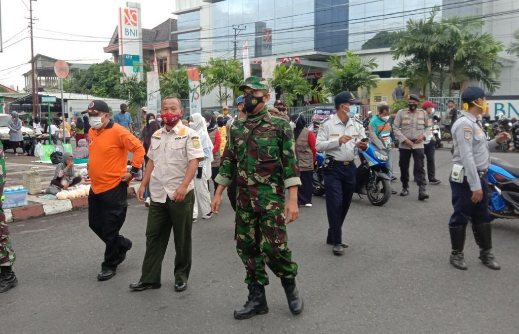 “Kita melaksanakan pengamanan disini dalam rangka pengawasan penegakan disiplin mematuhi protokol kesehatan seperti penggunaan masker, jaga jarak dan cuci tangan,” ujar Babinsa Pelda Aming Jaya