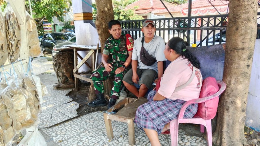 OKU – Untuk membantu meningkatkan pendapatan dalam berjualan, Babinsa koramil 12/Baturaja Kodim 0403/OKU Serda Ady Saputra melaksanakan Komsos dengan Warganya yang berjualan alat rumah tangga di Desa Air Paoh, Kecamatan Baturaja Timur, Kabupaten OKU, Sabtu (23/08/2025)