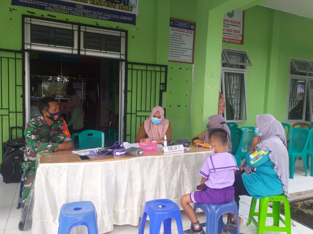 Kodim OKU – Personel Bintara Pembina Desa (Babinsa) Koramil 403-12/Baturaja Serma Beni Putra melaksanakan kegiatan pengamanan sekaligus monitoring penyuntikan Vaksin COVID-19 Tahap I untuk warga masyarakat Tanjung Baru bertempat di puskesmas Tanjung Baru Kecamatan Baturaja Timur, Kabupaten OKU, Selasa (26/10/2021)