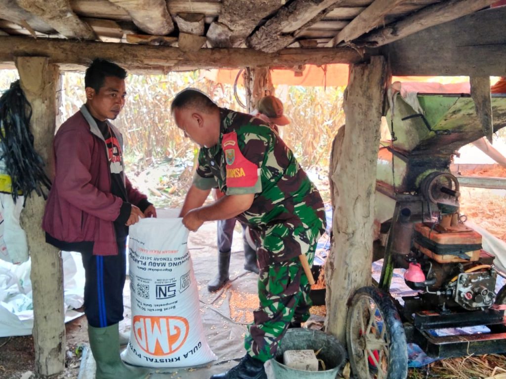 Babinsa Koramil 13/Lubuk Batang Bantu Warga Giling Jagung, Wujud Kepedulian TNI kepada Petani