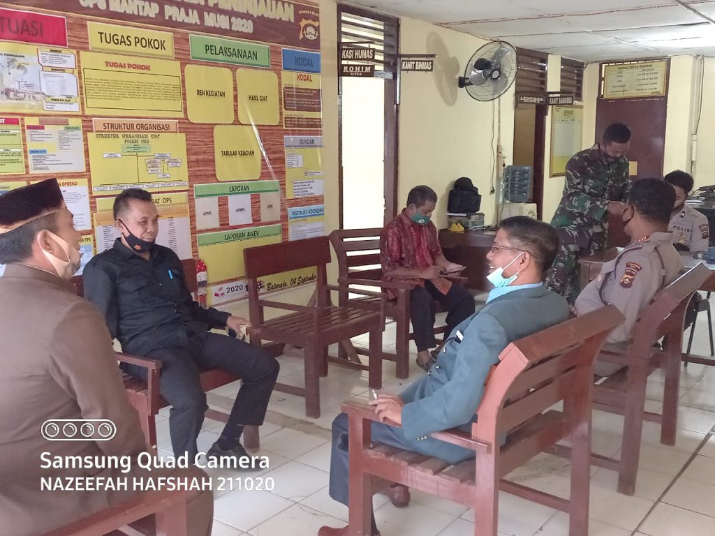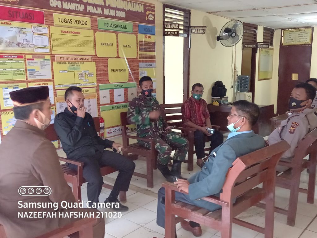 Kodim OKU – Babinsa 403-02/Peninjauan Serda Selamet Hariyadi menghadiri Mediasi Sosialisasi Penerapan Prokes Pencegahan Covid-19 pada panitia pelaksanakan Resepsi pernikahan di Gedung serba guna Kec. Peninjauan Kab. OKU, Kamis(21/01/21).