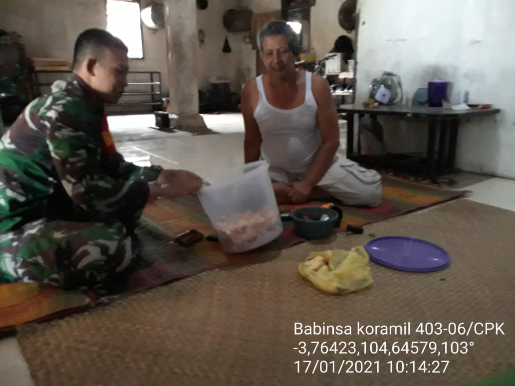 Kodim OKU – Babinsa Serda Harmoko melaksanakan komsos di Rumah Warga Desa Negeri Sakti Kec. Cempaka Kab. OKU TIMUR, Minggu (17/01/21).