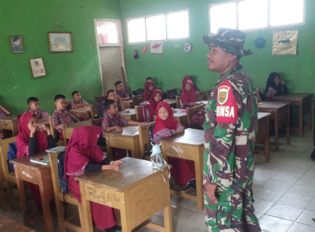 Babinsa Koramil 403-14/ Semendawai Suku III Serda Agung Nugroho berikan wawasan kebangsaan (wasbang) kepada murid SD Negeri Melati Jaya Kecamatan Semendawai Timur, Kabupaten OKU Timur, Rabu (22/11/2023)9