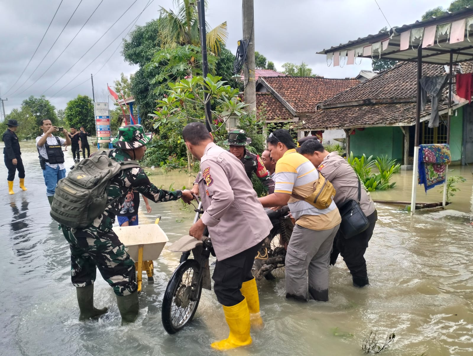 Kegiatan membantu evakuasi barang milik warga adalah suatu wujud bentuk kepedulian bersama, Babinsa dan Bhabinkamtibas terjun langsung untuk membantu meringankan kesulitan yang dialami oleh warga akibat musibah banjir.