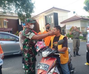 Kodim OKU – Mencegah penyebaran virus Covid -19 yang terus meningkat, Koramil 01/Pengandonan, Kodim 0403/OKU Serda Indra Guna melaksanakan Kegiatan operasi aman