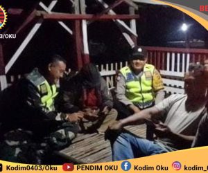 OKU – Anggota Babinsa Koramil 403-02/Peninjauan, Sertu Pirmansyah dan Sertu Abdulah Fikri bersama anggota Polsek Sinar Peninjauan dan Banser melaksanakan kegiatan patroli