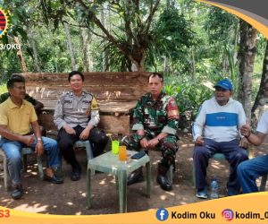 OKU – Menjalin suasana keakraban dan kebersamaan dengan warga binaan Babinsa Koramil 403-01/Pengandonan Kodim 0403/OKU Sertu Junaidi bersama Bhabinkamtibmas melaksanakan Komsos, melalui
