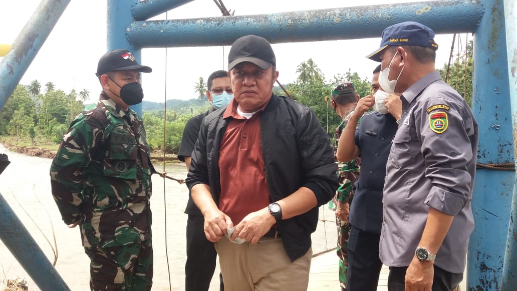 Kodim OKU – Dandim 0403/OKU Letkol Arh Tan Kurniawan. S.A.P, M.I.Pol mendampingi Pangdam II/Sriwijaya Mayjen TNI Agus Suhardi bersama Gubernur Sumsel H Herman Deru, meninjau lokasi banjir bandang di Kecamatan Muara Jaya Kabupaten Ogan Komering Ulu (OKU) Provinsi Sumsel, Selasa (19/10/2021).