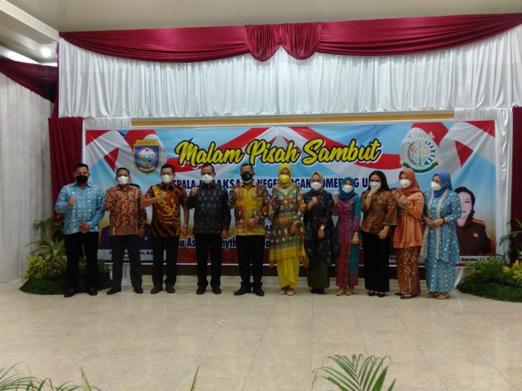 Kodim OKU – Dandim 0403/OKU Letkol Arh Tan Kurniawan, S.A.P., M.I.Pol dan Ketua Persit KCK Cabang XXXVIII Ny. Eva Tan Kurniawan hadiri Malam Pisah Sambut Kepala Kejaksaan Negeri OKU dari Bapak Bayu Pramesti,SH Kepada Ibu Asnath Anytha Idatua Hutagulung,SH,MH Bertempat di Rumah Dinas Bupati OKU, Jumat(06/08/21).