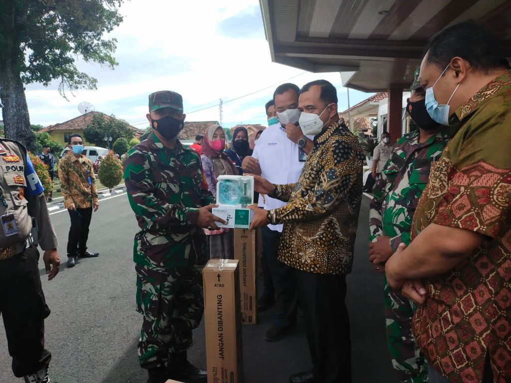 Kodim OKU – Danramil 403-12/Baturaja Kapten Cpl Suwignyo mewakili Dandim 0403/OKU menghadiri penyaluran bantuan tabung oksigen program TJSL BUMN PT. Semen Baturaja Persero Tbk. kepada pemerintah Kab. OKU Bertempat di halaman Rumah dinas Bupati OKU Jl.Hos Cokro Aminoto No 1 Baturaja, Untuk membantu penanganan Covid-19, Kamis (07/10/2021).
