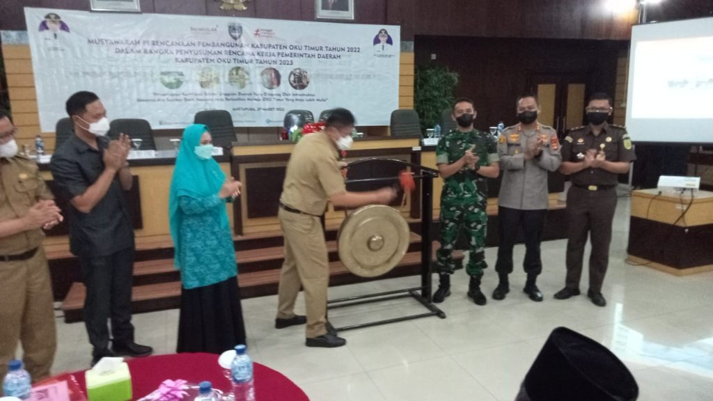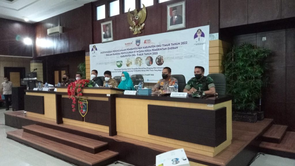 Kodim OKU – Dandim 0403/OKU Letkol Inf Ferizal R, S.I.P menghadiri giat Musyawarah rencana pembangunan Kabupaten OKU Timur Tahun 2023 yang diselenggarakan di Gedung Bina Praja 1 Pemkab OKU Timur, Kabupaten OKU Timur, Selasa (29/03/2022)