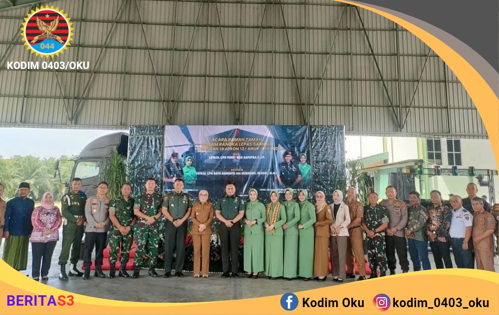 BeritaS3.com – Dandim 0403/OKU, Letkol Arh Yusuf Winarno S.I.P., M.Han., menghadiri acara lepas sambut Danskadron 12/AJY yang berlangsung di Aula Skadron12/AJY Lanudad Gatot Subroto Kecamatan Way Tuba, Kabupaten Way Kanan, Provinsi Lampung, Senin (29/9/2025).