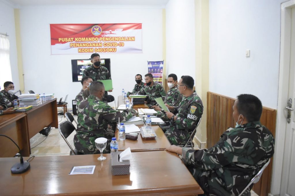 Kodim OKU – Tim Pengawasan dan Evaluasi (Wasev) Bidang Teritorial Semester II TA. 2021 melaksanakan kegiatan kunjungan ke Kodim 0403/OKU, dipimpin oleh Waaster Kasdam II/Swj Letkol Arh Raden Novi Setiana,S.I.P. yang beranggotakan Pabanda Puanter Kodam II/SWJ Mayor Inf Agus Sutono, Bati Puanter Kodam II/Swj Serma Murdani dan Driver Prada Yaslam. Jumat (17/09/2021)