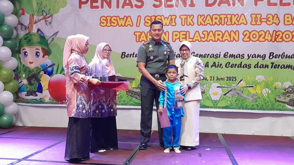 OKU – Komandan Kodim (Dandim) 0403/OKU, Letkol Arh Yusuf Winarno. S.I.P., M.Han bersama Ketua Yayasan Kartika II-34 Baturaja Kodim 0403/OKU Ny. Shindy Okta Yusuf Winarno , hadiri kegiatan perpisahan dan pelepasan siswa dan siswi TK Kartika II-34 Baturaja bertempat di Hotel The Zuri Baturaja Kabupaten OKU, Sabtu (21/06/2025)