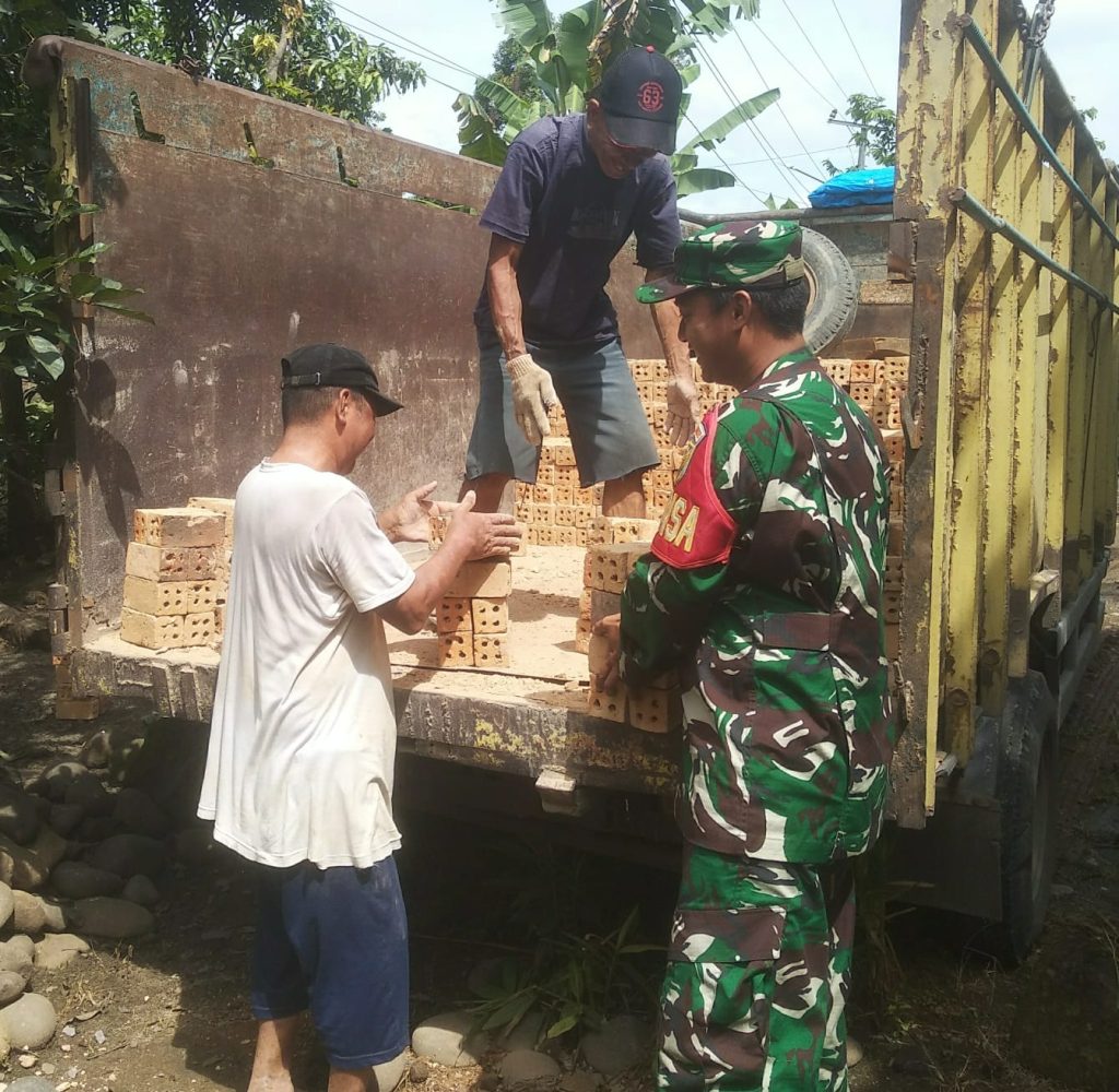 Dekatkan Dengan Masyarakat, Babinsa Pengandonan Ikut Turunkan Batu Bata