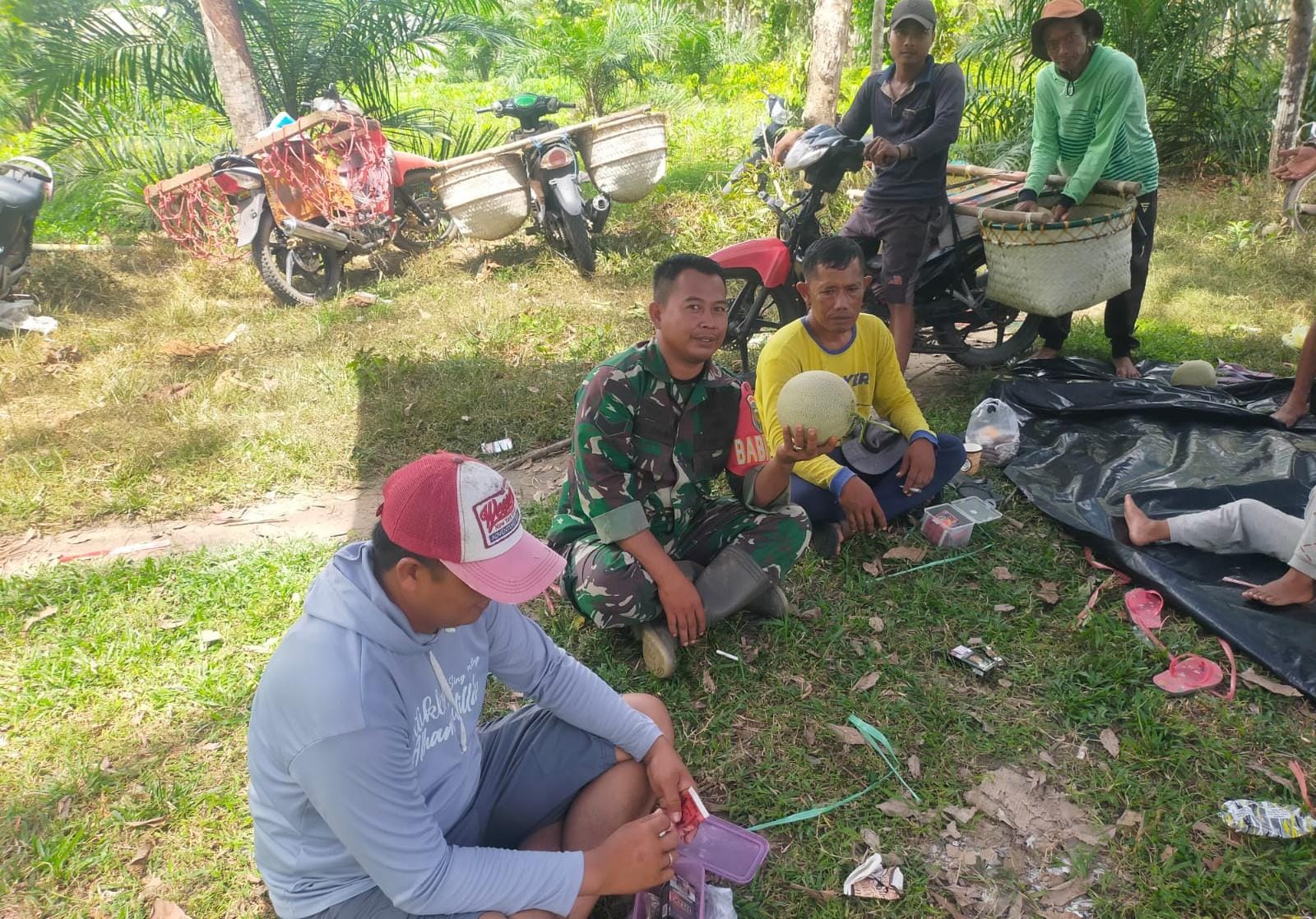 OKU Timur, BERITAS3.com β Anggota Koramil 403-04/Belitang, Kodim 0403/OKU, Sertu Agus Rudiono turun ke ladang untuk melaksanakan kegiatan Komunikasi Sosial (Komsos) dengan petani melon di Desa Nusa Tenggara, Kecamatan Belitang III, Kabupaten OKU Timur, Jumat (19/12/2025).