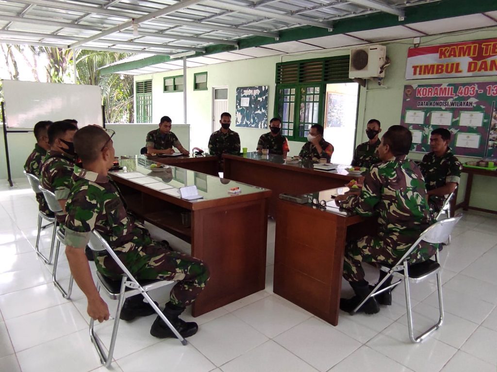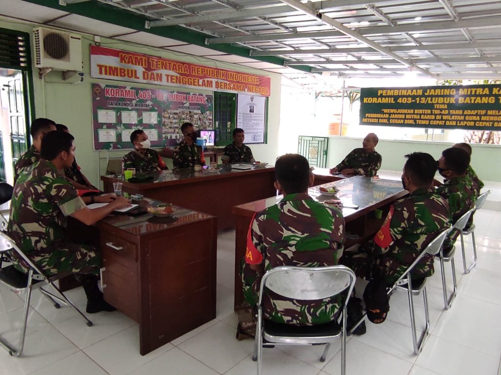 Kodim OKU – Danramil 13/Lubuk Batang Kapten Inf Surasa di ruang pertemuan Koramil memberikan jam Komandan pada anggotanya guna memberi arahan pada anggotanya biar tidak terlena pada tugas pokok masing masing anggotanya, terutama tentang tugas para babinsa semakin ke depan tidak ringan tugas yang di embannya, Selasa (15/02/2022)