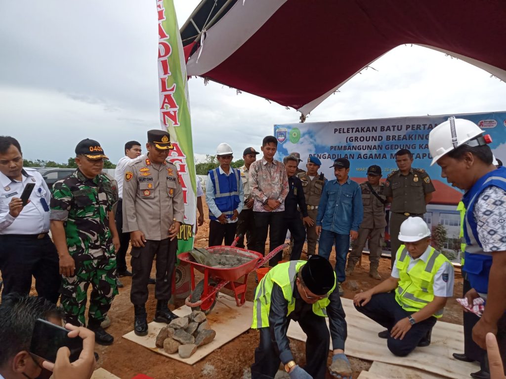 Kodim OKU – Dandim 0403/OKU Letkol Inf Ferizal R, S.I.P diwakili Kasdim 0403/OKU Mayor Czi Agus Supriyadi hadiri Peletakan Batu Pertama Pembangunan Kantor Pengadilan Agama Kabupaten OKU Timur, Rabu (26/10/2022).