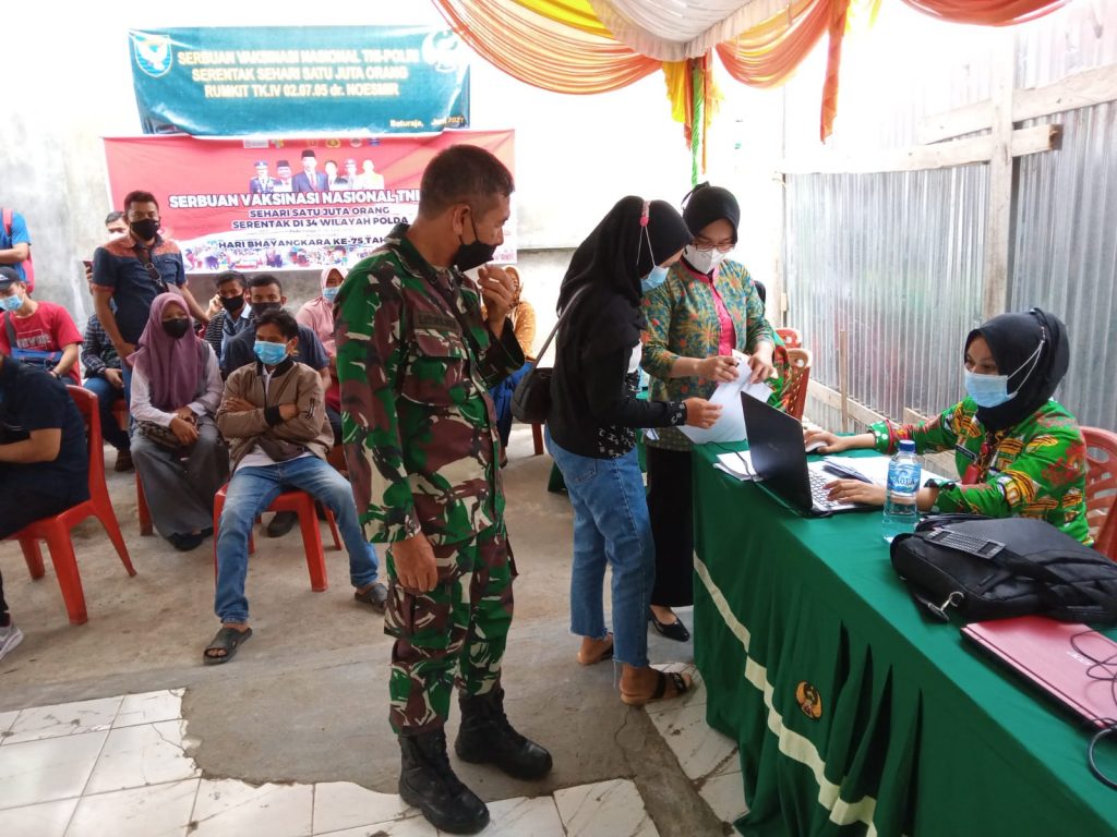 Kodim OKU – Serbuan Vaksinasi COVID-19 bersinergi Dengan vaksinator dari Rumkit TK. IV 02.07.05 dr. Noesmir Baturaja, Dengan mematuhi Protokol Kesehatan dengan diawasi ketat oleh personil Kodim 0403/OKU. Agar tidak terjadi kerumunan tetap mengutamakan Protokol kesehatan agar proses Vaksinasi Dosis II dapat berjalan lancar.