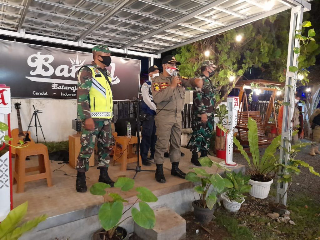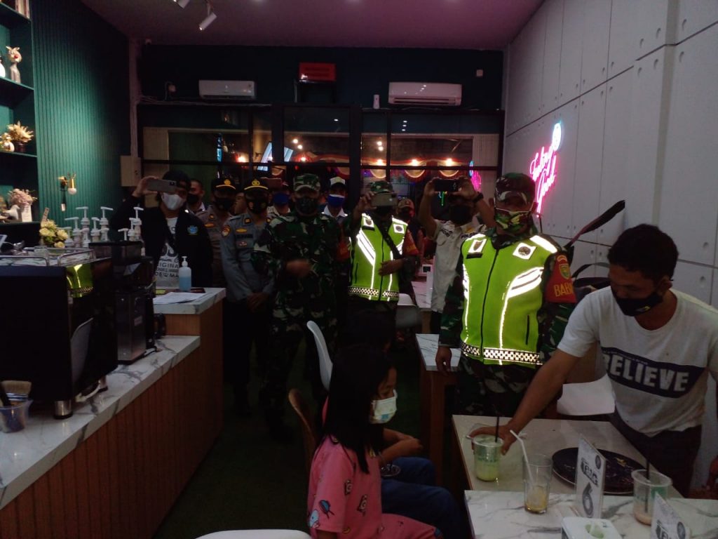 Diawali apel bersama petugas gabungan melaksanakan patroli dalam rangka Pengawasan Pemberlakuan Pembatasan Kegiatan Masyarakat (PPKM). Salah satu sasarannya adalah di tempat Cafe – cafe.