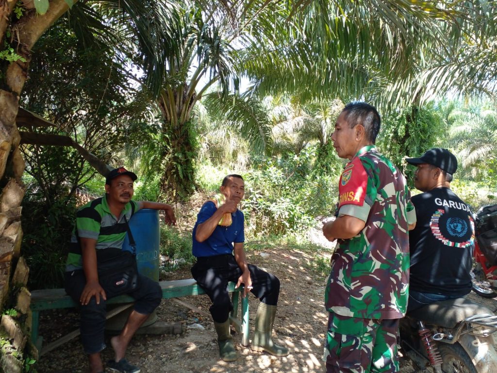 Dalam kegiatan komsos tersebut Babinsa melaksanakan sosialisasi bahaya kebakaran hutan dan lahan (karhutla) kepada masyarakat.