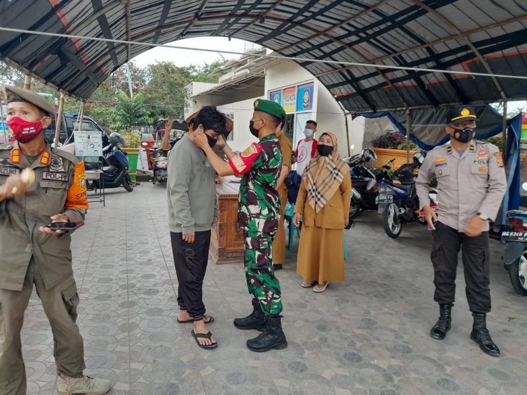 Kodim OKU – Babinsa Koramil 12/Baturaja Kopda Ary Puja bersama Tiga Pilar Kecamatan Baturaja Timur melaksanakan kegiatan Operasi Yustisi Tertib Masker, Selasa (23/11/2021).