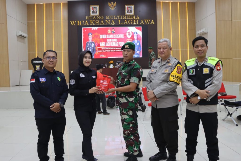 Kegiatan donor darah tersebut digelar dalam rangka memperingati Hari Humas Polri ke 73 tahun 2024 yang dibuka langsung oleh Waka Polres OKU Kompol Yulfikri, SH. dengan diikuti oleh sekitar 73 peserta donor dari Personil, Kodim, Polres, Kominfo, Dodiklatpur, Dishub, Sat Pol PP, Kejaksaan Negeri, Pengadilan Negeri, Media/Wartawan dan masyarakat setempat.
