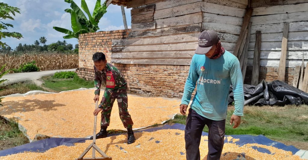 Disela kegiatannya, Serda Isrom menyampaikan Penjemuran jagung merupakan proses pengeringan jagung basah dengan memanfaatkan panas sinar matahari. Jagung dijemur agar kandungan air di dalamnya dapat berkurang. Setelah jagung dijemur, jagung kemudian dapat di jual ke pengepul.