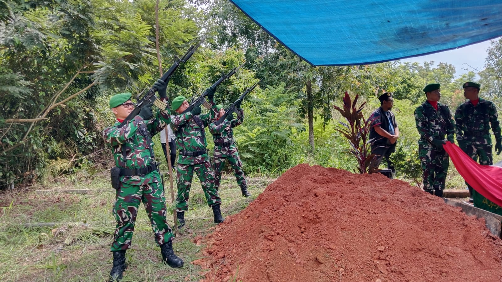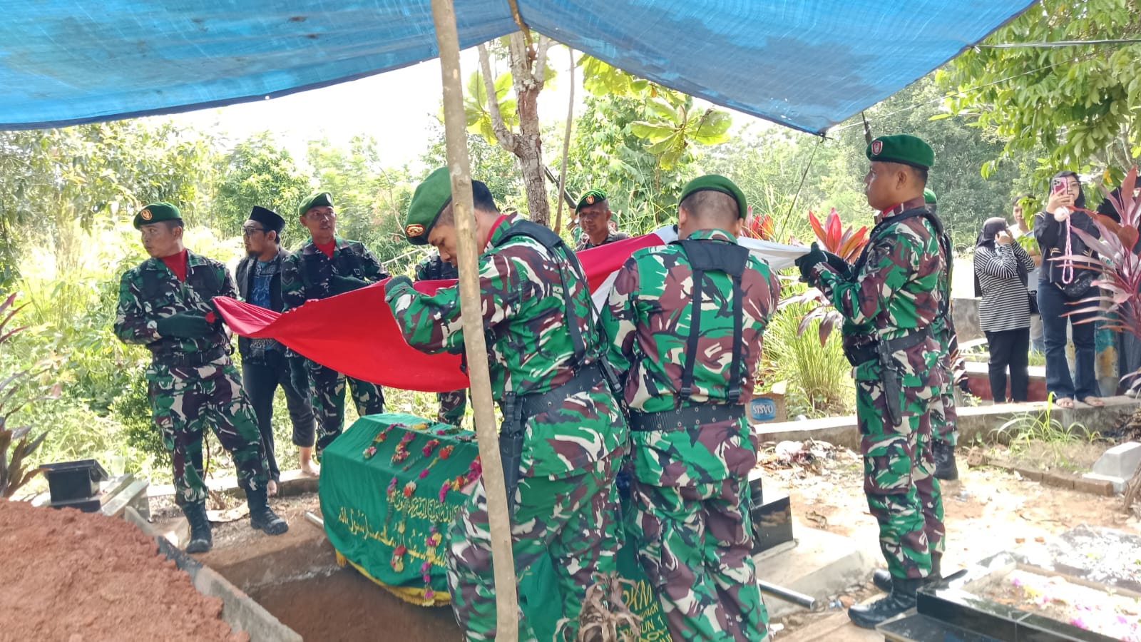 Prosesi pemakaman secara militer dilaksanakan di Tempat Pemakaman Umum, tepatnya di Tebing Bebatuan, RS Holindo, Kecamatan Baturaja Timur, Kabupaten OKU, Selasa (11/11/2025)