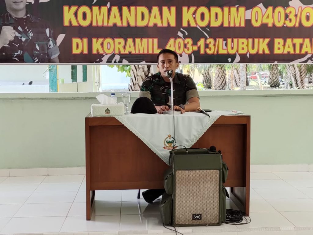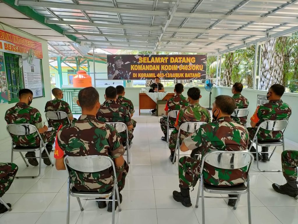 Kedatangan Dandim disambut langsung oleh Danramil 403-13/Lubuk Batang, Kapten Inf Surasa dan Ketua Persit KCK Ranting serta seluruh anggota militer, dilanjutkan pengarahan Dandim kepada seluruh anggota bertempat di aula Makoramil 403-13/Lubuk Batang