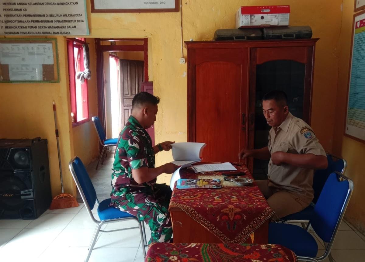Dalam kegiatan tersebut, Serda Anton mengingatkan kepada aparatur Desa agar selalu memperbarui data terbaru yang ada di desa.